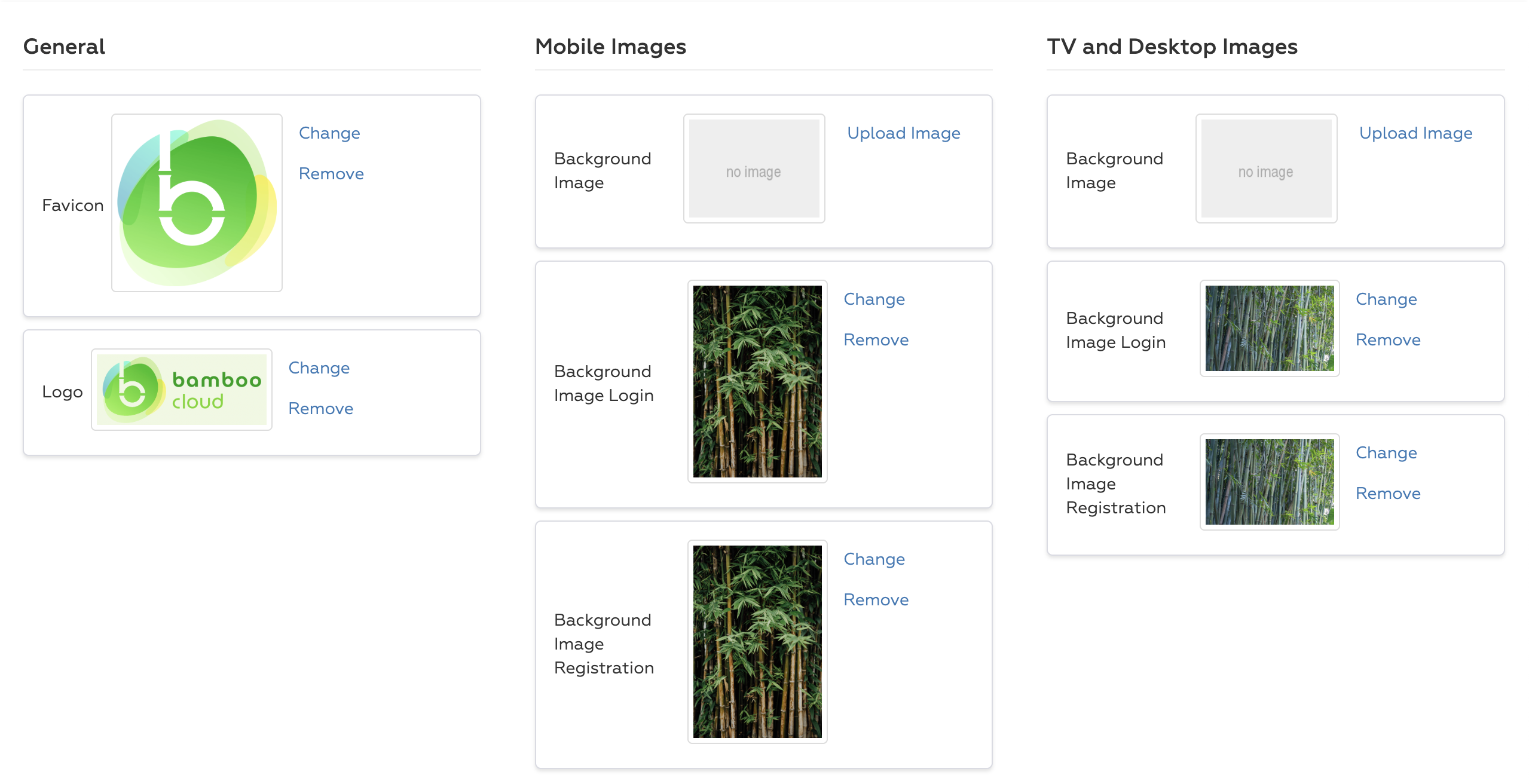 Additionally, you can upload images for the overall background of your site and apps, as well as different ones for login and registration pages.