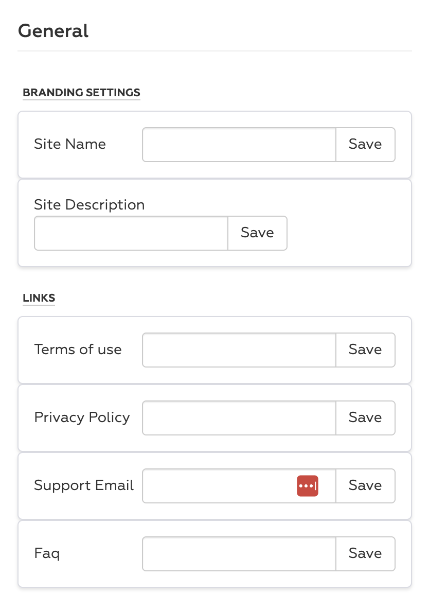 Under links, you can also add URLs to legal pages for users who enroll on your site, such as the terms of use and privacy policy. If you don't have custom links for those pages, leave them empty, and we will use the Bamboo Default ones.